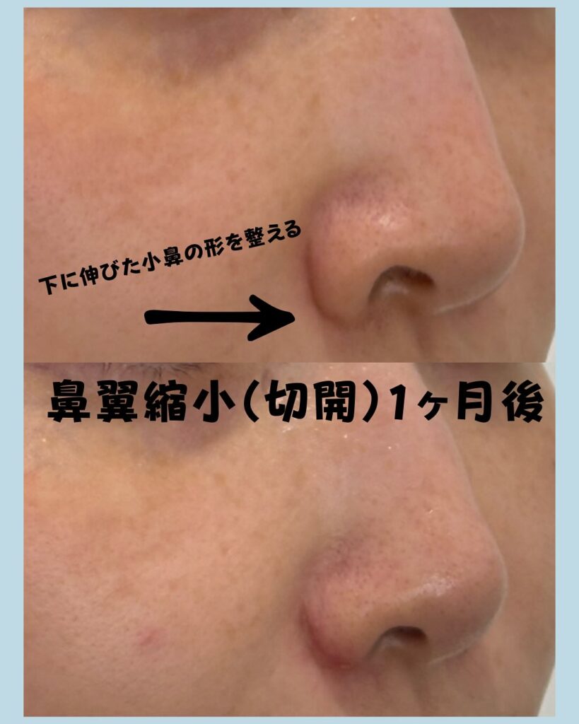 お写真とイラストを持ってきてくださったので、その写真の小鼻の感じに近づくように施術しました。