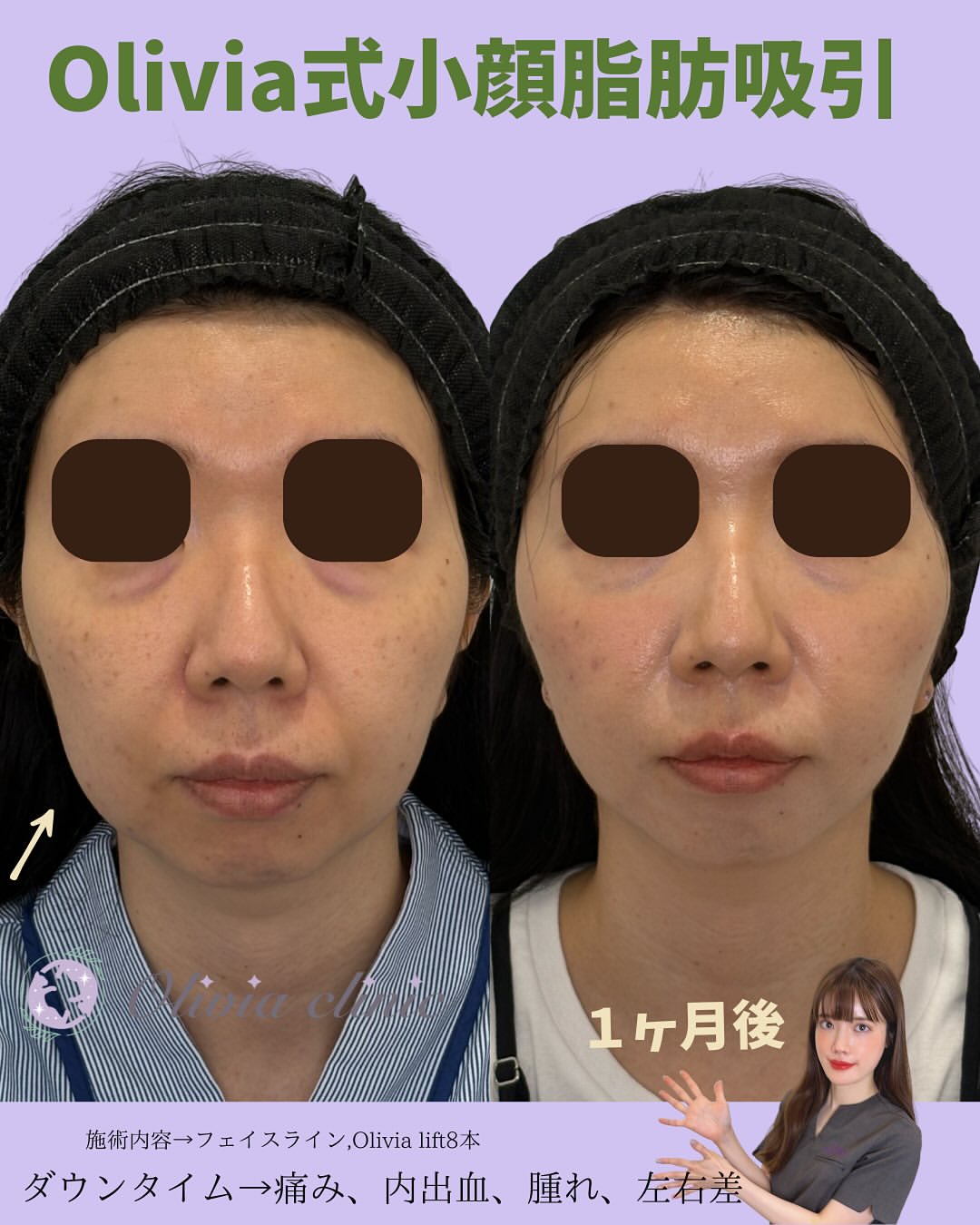 固定バンド不要、腫れずらいolivia式小顔脂肪吸引