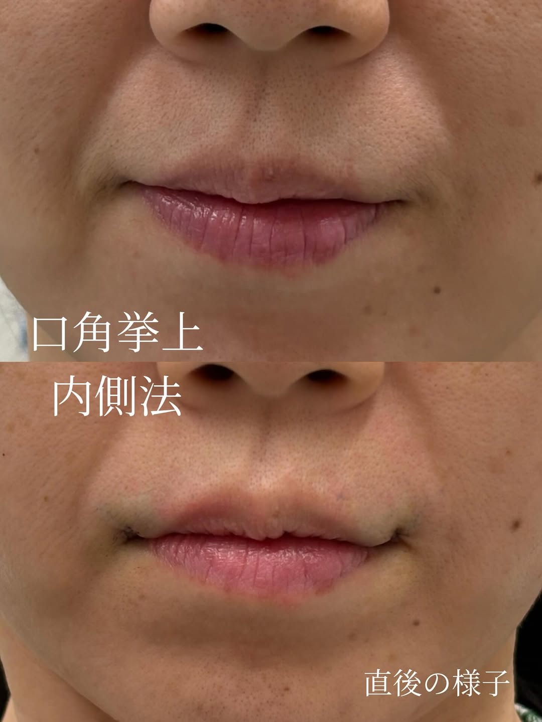内側法は口腔内と口角の目立たないところを切開しています。