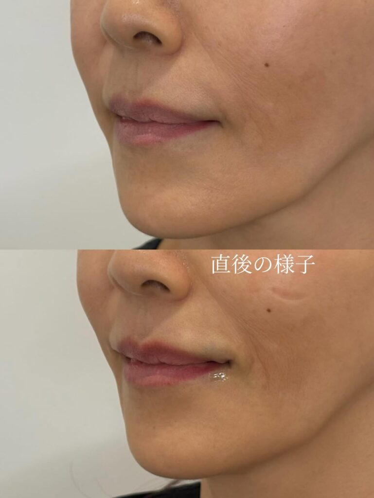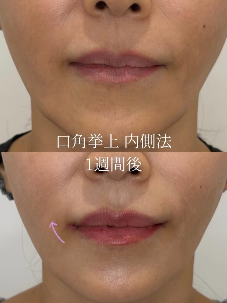 左右の口角の上がり方が異なっていたので、できるだけ揃えられるように調節しています。