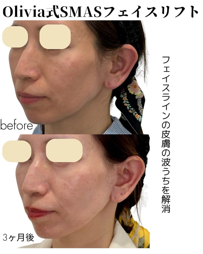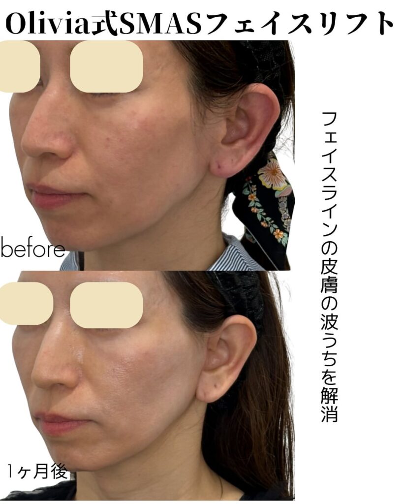 SMAS層を剥離してolivia liftで引き寄せてきた余分な皮膚を綺麗に取ることでたるみをリセット🫶