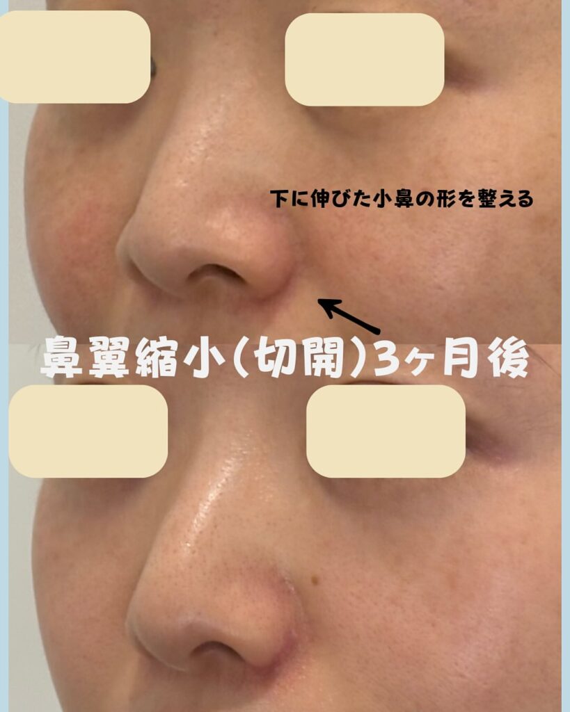 お写真とイラストを持ってきてくださったので、その写真の小鼻の感じに近づくように施術しました。