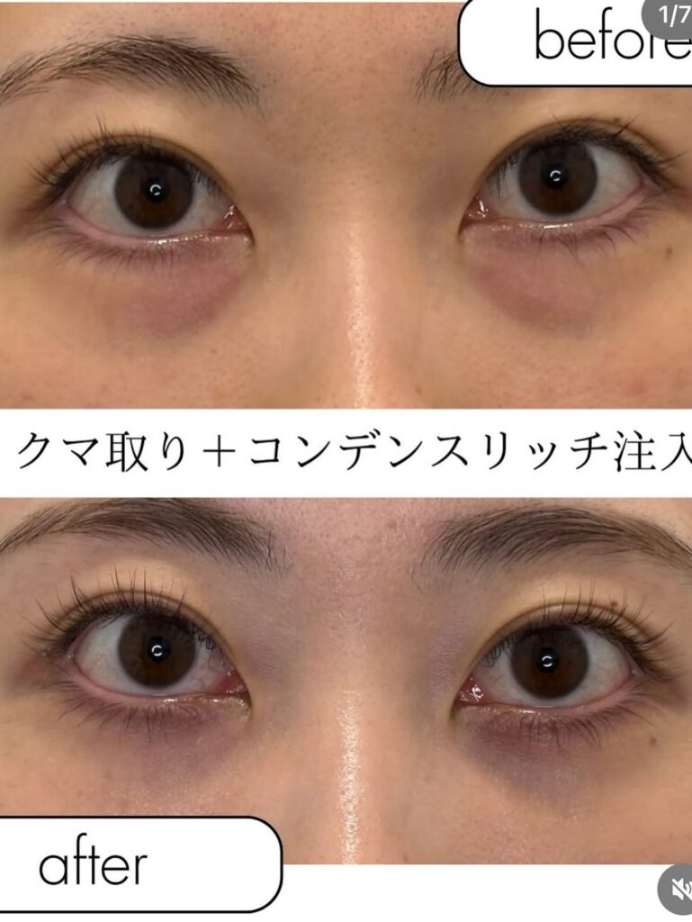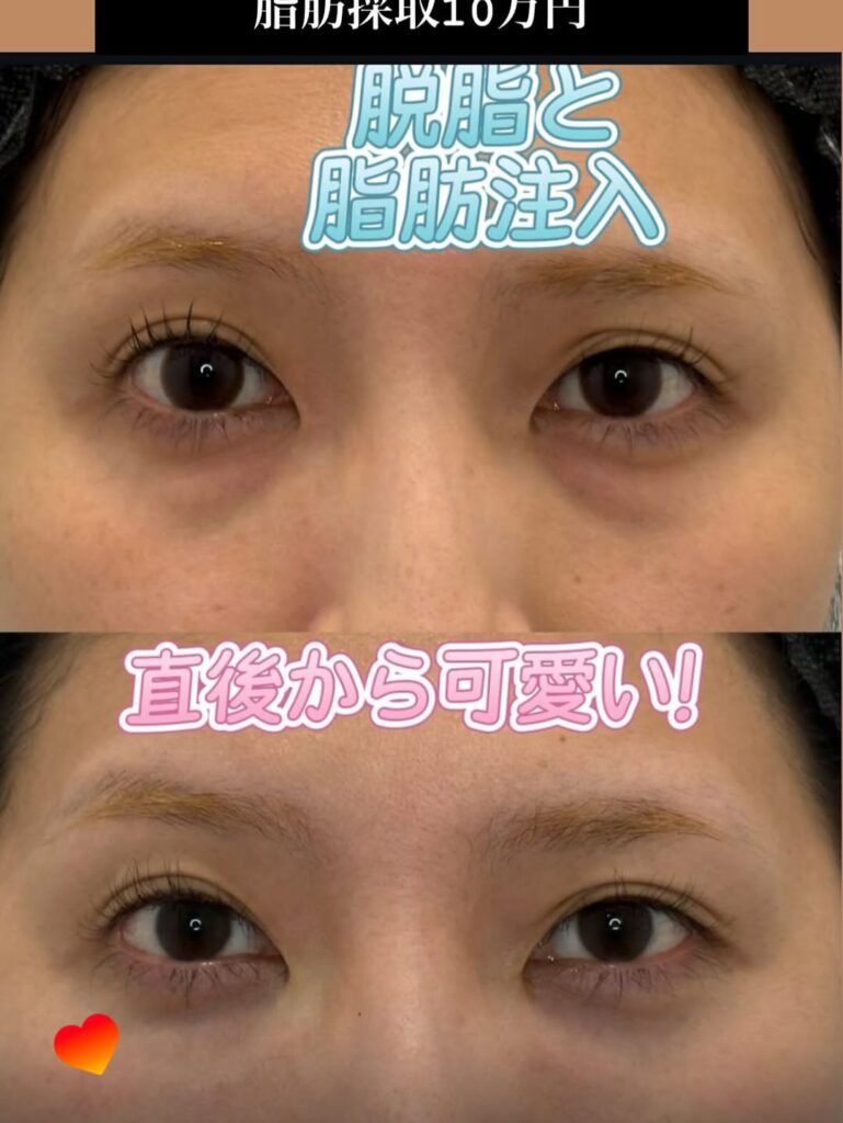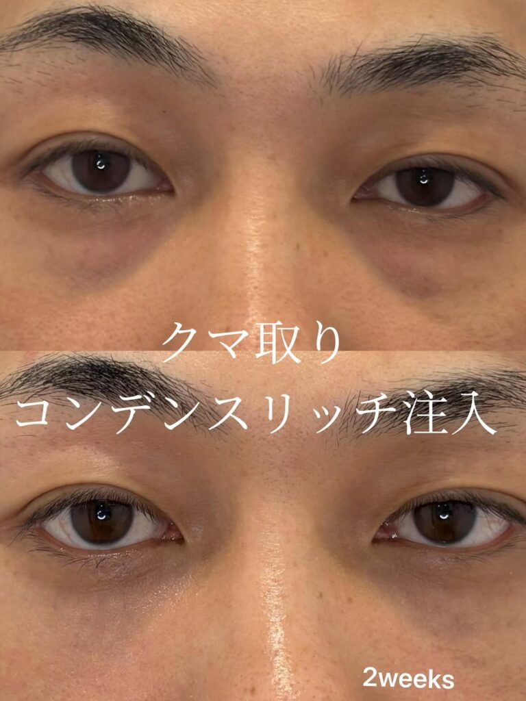 すでに中顔面が下に削げ落ちて目の下の凹みが強い場合は、クマを取った後にprpや脂肪を注入するのがおすすめです。