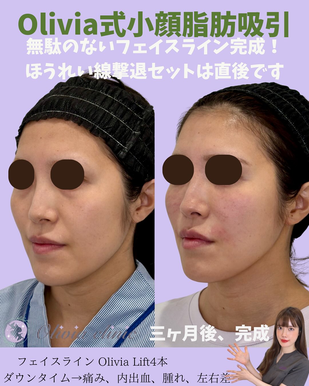 固定バンド不要、腫れずらいolivia式小顔脂肪吸引