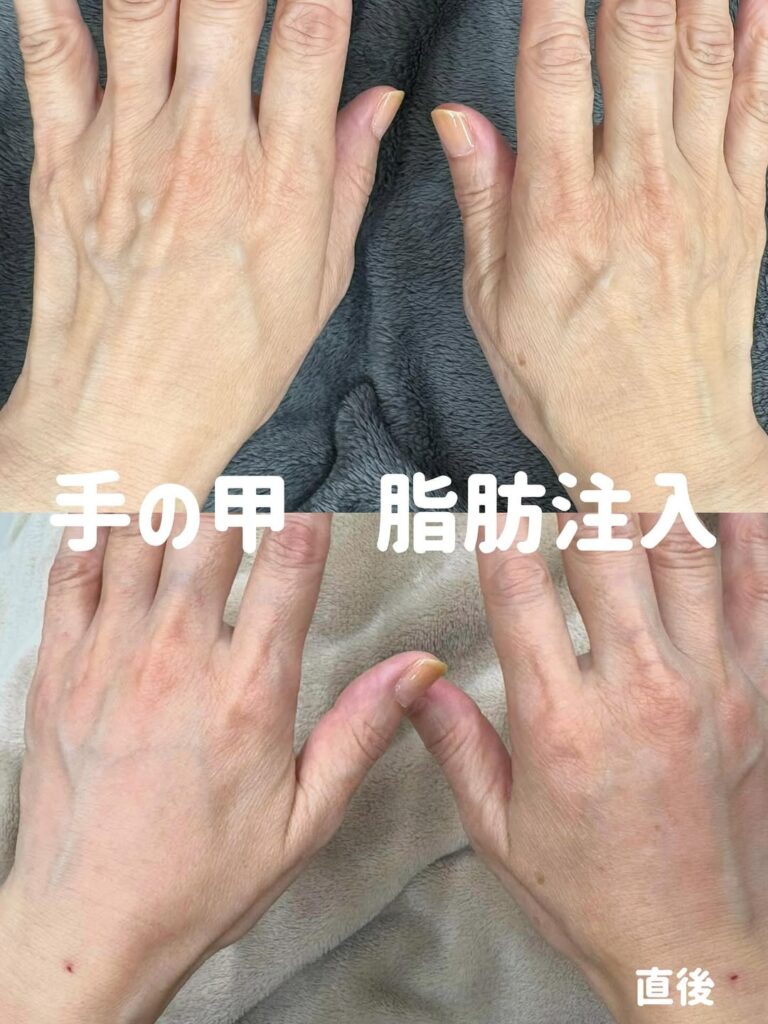 脂肪注入直後のお写真です。血管と筋の浮きが気になってきてくださる方が多いです。