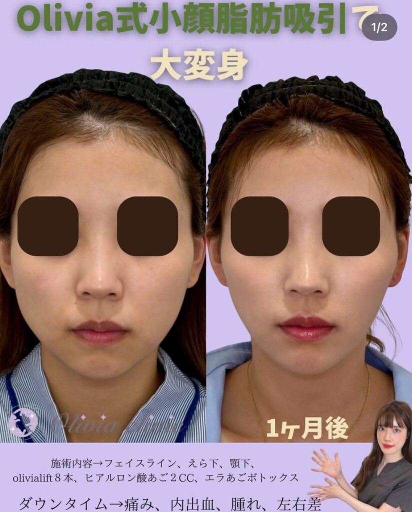 固定バンド不要、腫れずらいolivia式小顔脂肪吸引