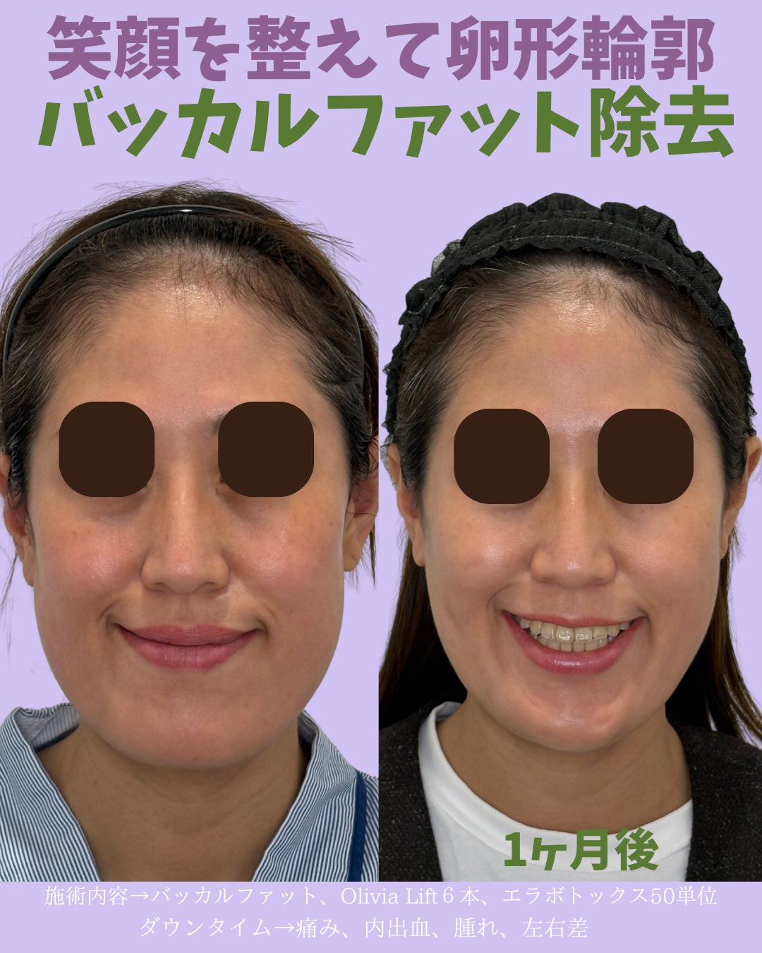 💰モニター料金→バッカルファット除去17万円、olivia lift 1本4万円、笑気麻酔1万円 、エラボトックス50単位5万円、総額47万円