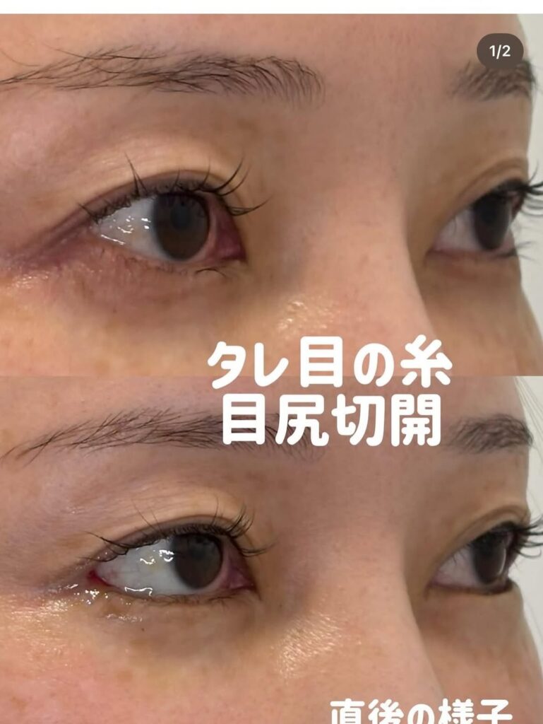 目尻切開で“横幅”を出しつつ、糸で少しだけ“下向きライン”をプラス。