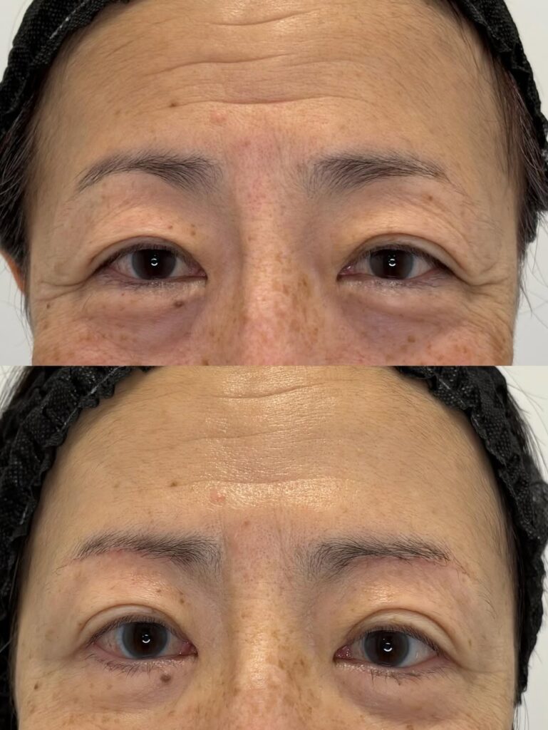 60代の患者様の額に刻まれたシワもボトックスが切れても術前より浅く
