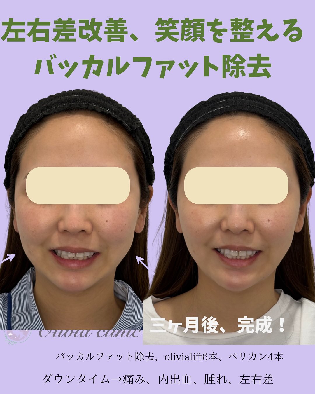 固定バンド不要、腫れないバッカルファット除去、もちろん結果もしっかり出ます💪